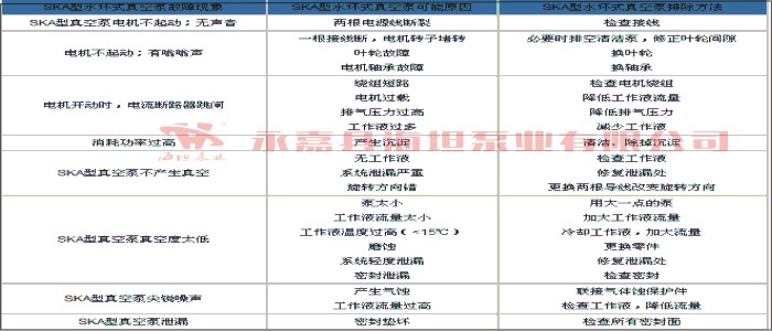 SKA型水環(huán)式真空泵,故障原因及排除方法: